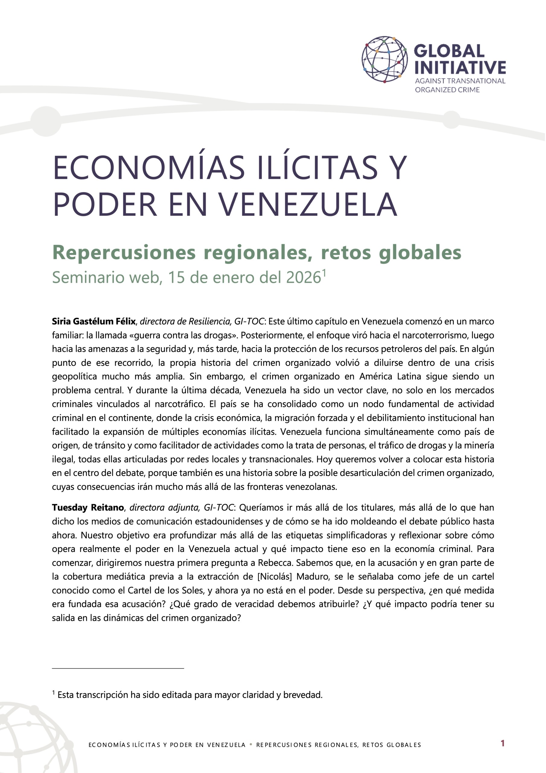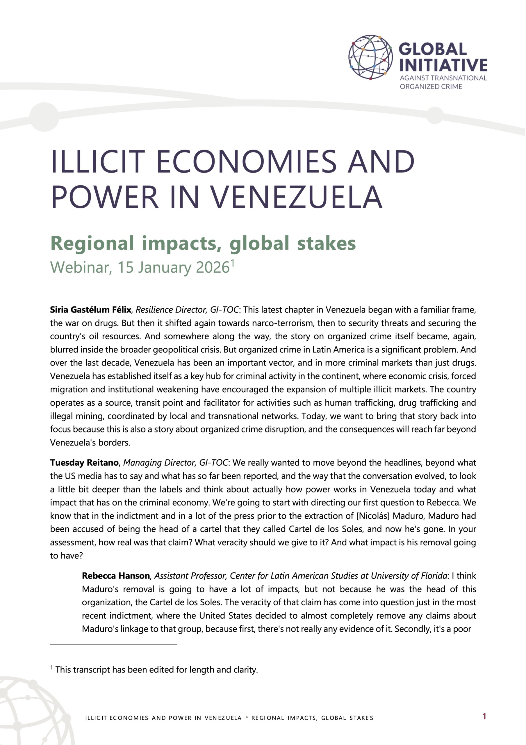 This virtual event convenes GI-TOC’s Latin America and Caribbean Observatories alongside leading experts and academics to examine the current configuration of illicit economies and organized crime in Venezuela—and what it means for the region and beyond. Grounded in field-based research and empirical analysis, the discussion will unpack the realities of criminal and armed actors today, their entanglement with state institutions, and the regional spillovers shaping security, governance, and illicit markets.